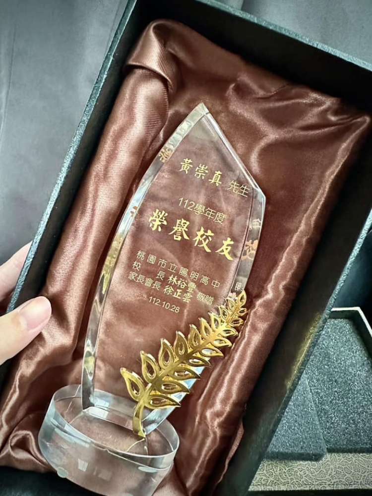 今天能拿到陽明高中頒給我「傑出校友」真的感到很榮幸。