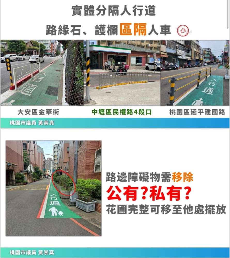 包含:路緣石、護欄區隔人車。