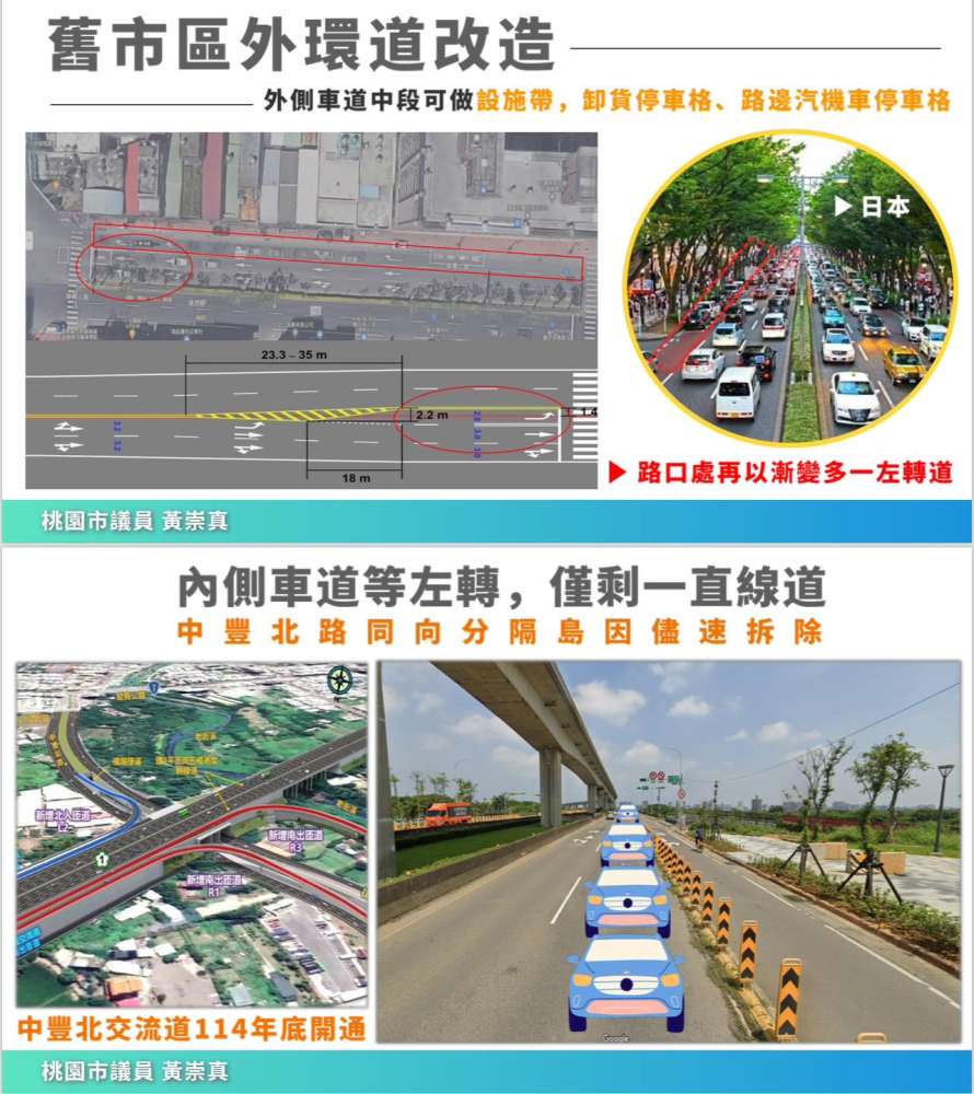 包含:避車彎設置停車格、人行道拓寬。