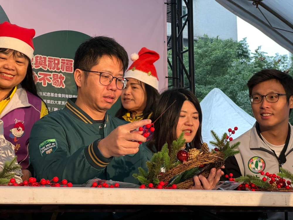 聖誕佳節快到了,在現場也與大家一起動手做聖誕花圈,希望這樣的公益活動能號召更多民眾一起做愛心