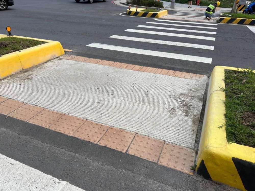 因庇護空間加高需要牽扯到改變路型,且施工期間恐會對行人造成較大影響,因此先以庇護空間兩側挖導流溝因應。