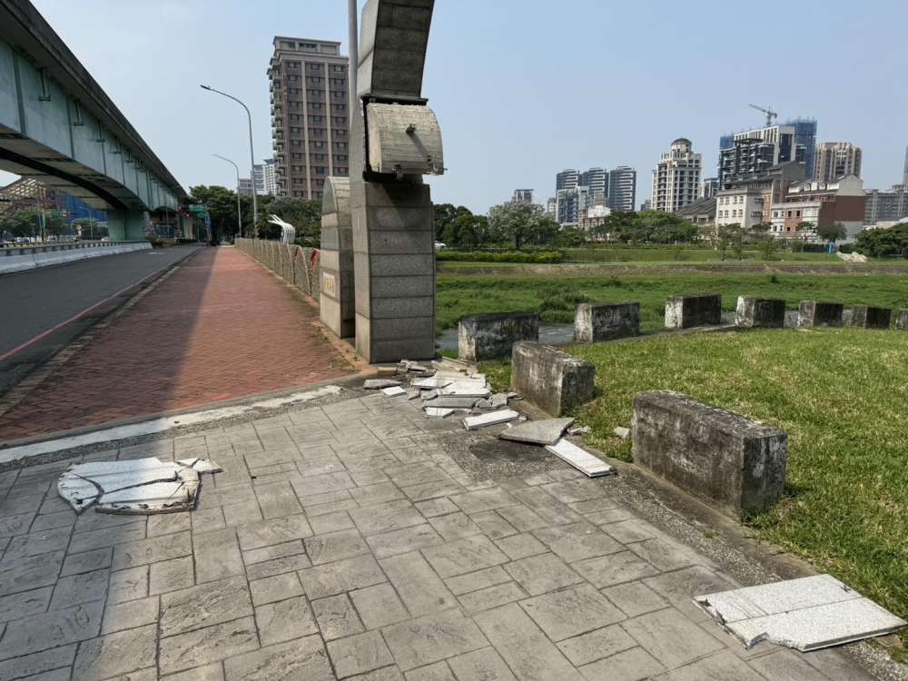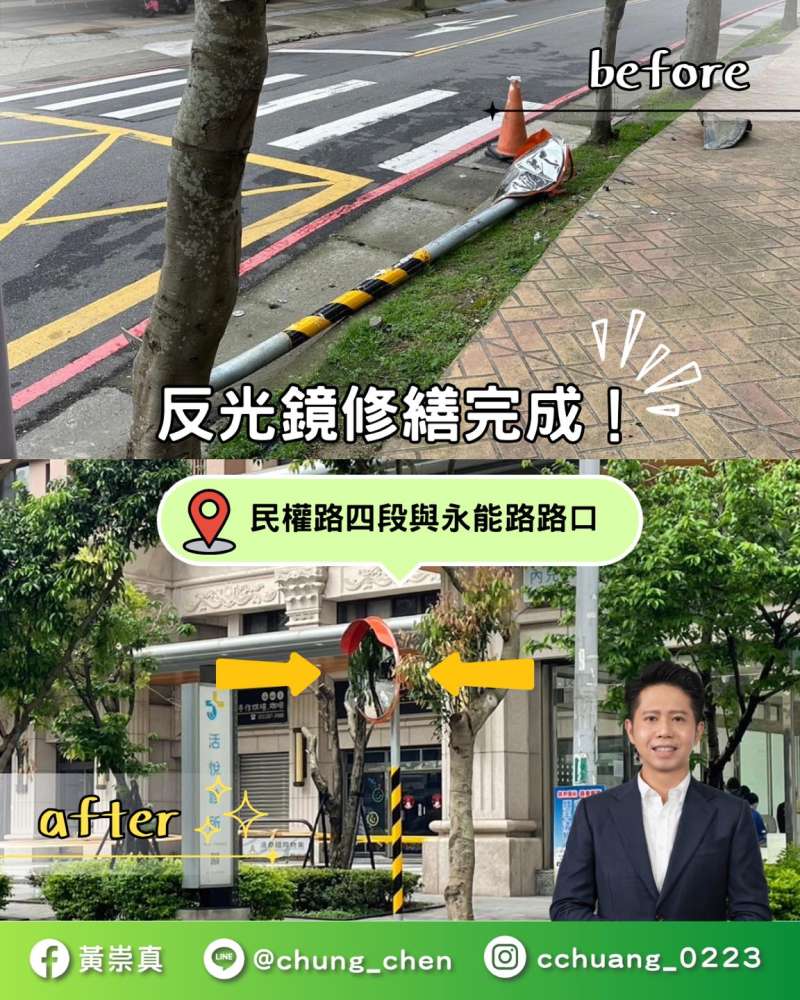 反光鏡遭撞毀,造成周遭交通安全的風險 -